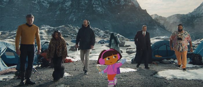 This first commercial takes us 16,950 feet above sea level into the mountain range where the iconic Paramount mountain can be found. At the summit, we see the likes of Christopher Pike and Spock from Star Trek: Discovery (and their upcoming spin-off Star Trek: Strange New Worlds), Tom Selleck as Frank Reagan from Blue Bloods, Snooki from Jersey Shore, the Paw Patrol pups, DJ Khaled with a Grammy around his neck, Beavis and Butt-Head, James Corden on a snowmobile with Dora the Explorer, Jeff Probst, Gayle King, and former Pittsburgh Steelers coach Bill Cowher.