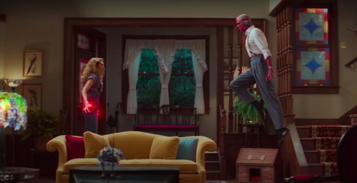 But don’t worry, we’re still getting all kinds of sitcom shenanigans, with WandaVision moving on to pay homage to sitcoms from the 1980s, 1990s and 2000s, including footage where Wanda is talking to the camera like a Modern Family-style sitcom. But the wacky hijinks can only go on for so long, as Vision begins to wonder what lays outside of Westview.