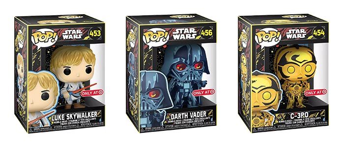 Based on classic ’70s Star Wars comic art, a new Star Wars Retro Series brings Luke Skywalker, Darth Vader, a Stormtrooper, and C-3PO back to Funko’s Pop! line in a dazzling, vibrant way. Available exclusively at Target.