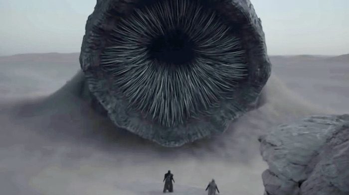 For the purposes of this very tortured metaphor, consider that the massive Dune sandworm in the image above represents the daunting prospects of a $165-plus million budgeted Dune movie making anywhere near enough money at the box office to justify return trips to the world of spice and sand — in a pandemic, no less. Meanwhile, the tiny figures in the foreground about to get swallowed up are director Denis Villeneuve and eager fans hoping against hope that we’ll actually get a Part 2 out of this, somehow.