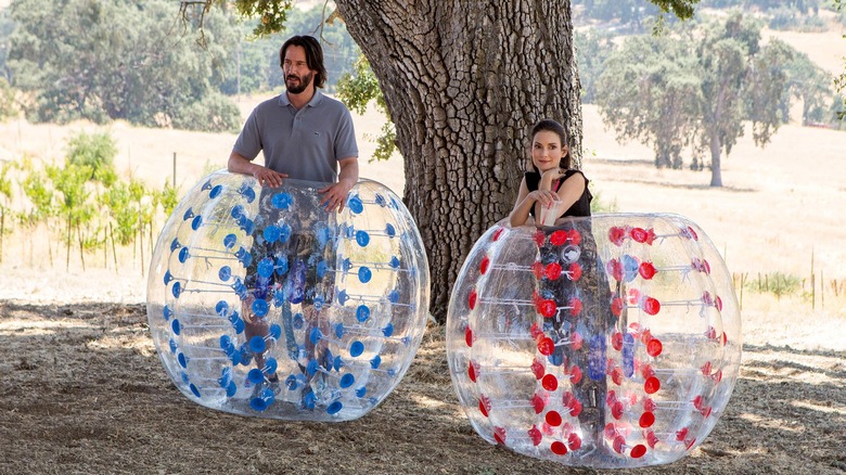 Frank and Lindsay, disillusioned and bitter, find themselves seated next to each other at a grotesquely crass destination wedding in Paso Robles; the groom is Frank's detested brother and Lindsay's detested ex. And, for the whole film, those two reluctant guests are the entire show. Occasionally a waltzing couple comes into frame, or someone will roll past in a giant ball, but that just emphasizes that the only dialogue is Reeves and Ryder's vitriolic, profane back-and-forth. Rarely has an onscreen couple been so perfectly imperfect together. The last scene, in which they both seem embarrassed to have found even provisional happiness, is a treasure -- but then, so is the whole movie.