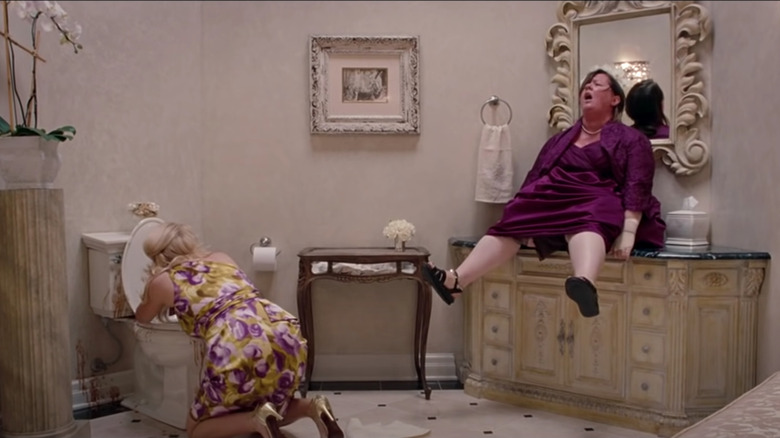 The main plot is about Annie's disintegrating relationship with her best friend Lillian (Maya Rudolph), as the latter's wedding plans are taken over by her perfect and wealthy new best friend, Helen (Rose Byrne). Along the way, the broke Annie, who can't even pay for her bridesmaid's dress, is kicked out of her crappy apartment and fired from her menial job. She also excruciatingly, miserably, apocalyptically ruins every single one of Lillian's engagement events, the worst of which involves a small Brazilian eatery and a titanic case of food poisoning that makes Lillian's bowels, like Annie, utterly betray her.