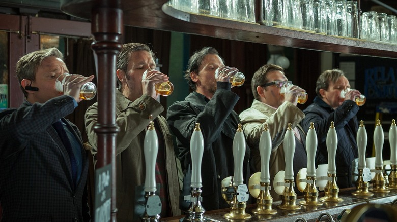 Edgar Wright's last film with chums Simon Pegg and Nick Frost is a meditation on nostalgia, growing up, and decapitating clones in a bathroom. Pegg plays Gary King, an aging man-child determined to round up the old gang for one more pub crawl, even though all the watering holes of yore have been bought out by boring corporations (who turn out to be alien invaders). It's hard not to see this as a nod to Wright's own move to Hollywood. For "The World's End," the final chapter in his and Pegg's Cornetto Trilogy, he's getting together with his mates one last time to party like they did in their younger days -- with lots of improbable jump cuts, extreme close ups, and character-based comedy.