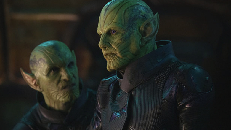 In the comics, the shapeshifting alien race of Skrulls (recently seen on screen in "Captain Marvel") lose a war with their alien rivals, the Kree, and subsequently sneak onto Earth and take the form of several key characters, purposefully creating distrust in the superhero community. Amid this confusion, a multi-pronged assault causes chaos on Earth: the Skrulls attack a S.H.I.E.L.D. helicarrier, orchestrate a breakout at the supervillain prison known as The Raft, and transport the Baxter Building to the Negative Zone, among other things. Eventually, Earth's heroes figure out a way to identify Skrulls in disguise, and the infiltrators are defeated.