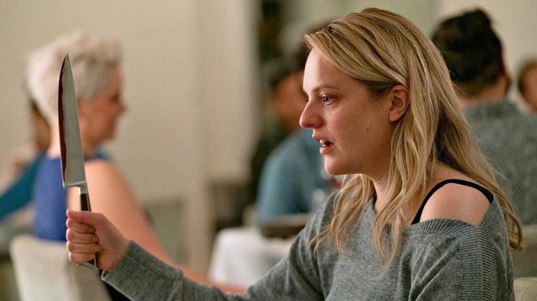 At this moment, the first time anyone other than Cecilia has seen Adrian as the titular invisible man, we see her sister believe Cecilia's story only for the knife to seemingly "fly" across the dinner table and slit her throat only to retract back into Cecilia's hand. A traumatized restaurant guest sees Cecilia, bloody knife in hand, shaking with terror as her sister bleeds out on the table. It's a remarkably effective jump scare, but the true horror is realizing the extent of Adrian's abuse. (BJ Colangelo)