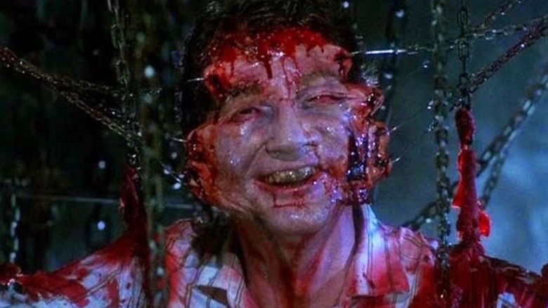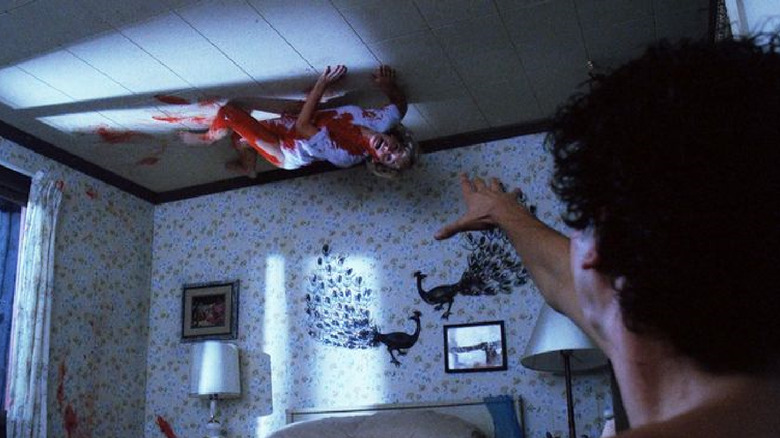 One of /Film's top scariest scenes has poor Tina Gray picked up and tossed around her room by the blade-wielding child killer. As her boyfriend, Rod, helplessly watches, Tina (who is in a nightshirt and her underwear) is pulled by some unseen force onto her wall, and eventually ceiling, and sliced to ribbons by Freddy's invisible-to-the-camera bladed claw glove. Rod is in the shot most of the time, so it's not him! Knowing that the killer has such invincibility, not to mention hearing Tina's blood-curdling screams, makes this not only the movie that put a new slasher icon on the map but stands tall as one of the most terrifying kill sequences put to film. (Anya Stanley)