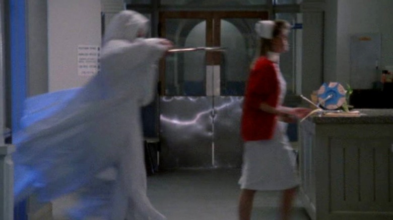 The reason it works so well is that there's none of the usual build-up you'd expect from a jump scare; if anything, the preceding minute of quiet routine on the hospital's night shift is set up to lull the audience into a state of slight boredom. And then "The Exorcist III" hits you with the trifecta: a screeching sting of music, a sudden zoom in, and a nun-like figure draped in white robes and wielding a pair of shears charging towards a poor unsuspecting nurse. (Hannah Shaw-Williams)