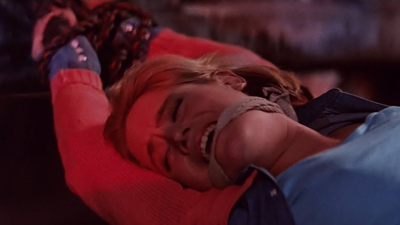 Sometimes, the greatest scares don't come from out of the darkness, but rather a looming sense of danger dangling right in front of your face. In 1986's "The Hitcher," Rutger Hauer plays a hitchhiker named John Ryder who traps a young man named Jim in a high-stakes game of cat and mouse after Jim offers him a ride. At one point, Ryder abducts a waitress named Nash who has been trying to help Jim and ties her between two semi-trucks with a gag in her mouth.