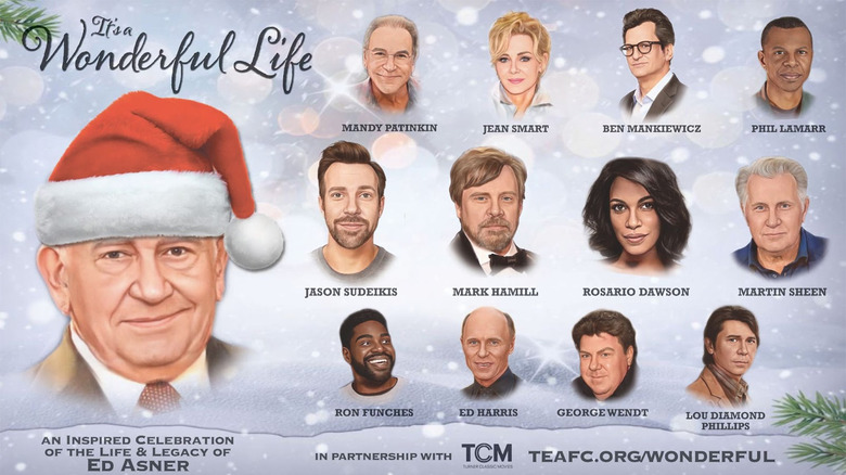 In Partnership with Turner Classic Movies and sponsored by MeTV, the "It's a Wonderful Life" virtual table read has a star-studded cast that will make this one-night-only event an incredible show. Alongside Jason Sudeikis, the performance will also include Rosario Dawson, Mark Hamill, Martin Sheen, Mandy Patinkin, George Wendt, Lou Diamond Phillips, Phil Lamarr, Ben Mankiewicz, Ron Funches, Ed Harris, and special guests. In case you didn't know, "Cheers" star George Wendt is the real life Uncle of Jason Sudeikis, so it's only appropriate that he's playing Uncle Billy, making for a charming family reunion. Hosted by Tom Bergeron, the 2021 Virtual Gala will also be a tribute to the wonderful life of Ed Asner.